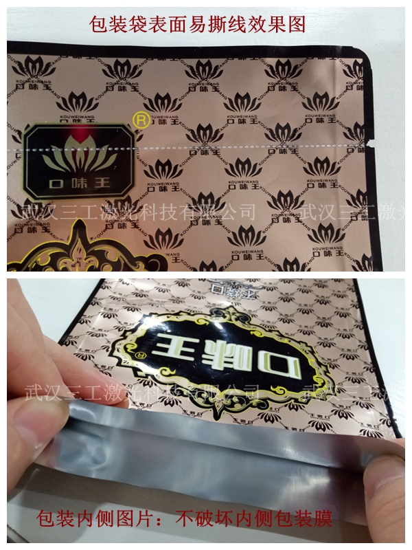 塑料包裝袋具有方便、省事的優點,成為了人們日常生活中必需品,無論是食品飲料包裝,還是日用百貨,還是糧油種子等,人們的生活中離不開塑料包裝袋,塑料包裝袋的使用保護了商品的安全,同時也極大的方便了人們的生活。對于采用易撕口開啟的包裝袋,撕裂度是關系到包裝物是否易開啟的主要指標,而摩擦系數是否合理是制約到材料表面在撕裂材料的過程中能否被消費者握牢的主要影響因素。包裝材料的撕裂力的大小直接表征了消費者在開啟包裝物時所需要的力。易撕線激光打孔劃線工藝,徹底改變了齒輪壓孔的加工方式,極大的改善了易撕線的加工局限性。
