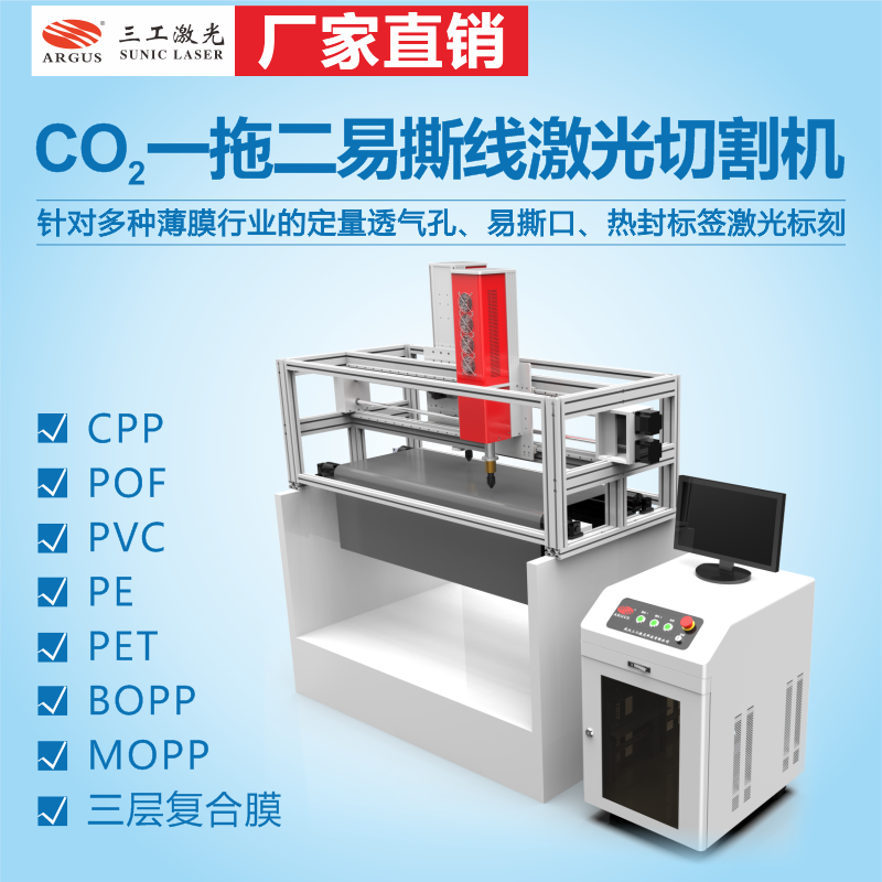 武漢三工激光在國內針對薄膜包裝行業提出激光代替機械加工工藝的企業,專為薄膜易撕線、定量透氣孔設計,而設計與開發的。與傳統的機械齒輪壓孔相比速度更快,孔徑孔距大小可調更加均勻,可以實現任意方向任意形狀易撕孔(線)標刻。激光工藝制作是一種瞬間高溫處理使孔周圍熱融保護,因此完全解決了后期熱收縮后出現的斷裂現象,在手感上也非常平滑,在感官上給客戶一種新的體驗。
