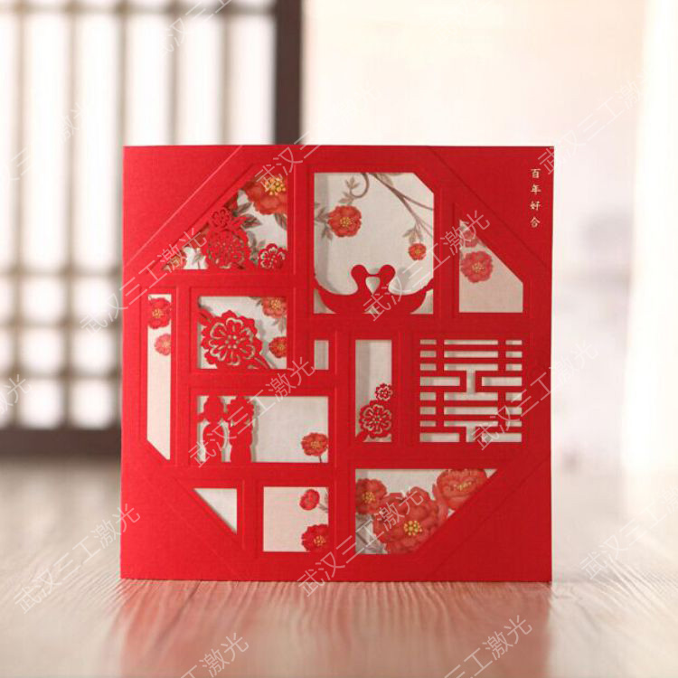 紅包利是封激光雕刻機無需開刀模,快速成型,切口平整,圖形可任意形狀,激光雕刻加工具有很強的立體感,且賀卡激光雕刻加工款式新穎。紅包激光鏤空機具有加工精度高、自動化程度高、加工速度快、加工效率高、操作簡單方便等特點,適應了紙品生產技術潮流,所以激光鏤空加工技術正在以驚人的速度在紙品行業內得到推廣和普及。可以徹底克服傳統喜帖賀卡印刷耗時、不環保的這些缺點。
